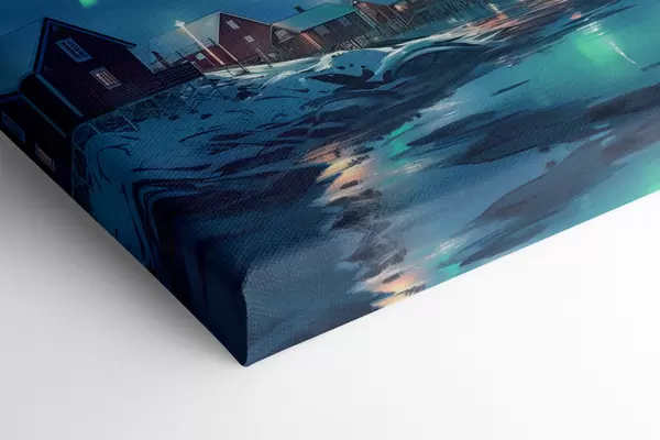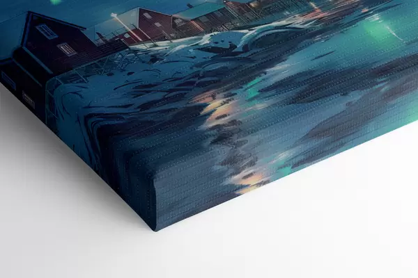 Paveikslas Norvegijos žiemos kaimas, šiaurės pašvaistės, naktinis dangus Nr s40300