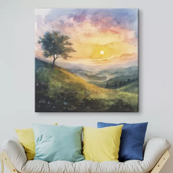 Paveikslas Pieva su kalvomis ir medžiu, gėlės, akvarelė Nr s40303