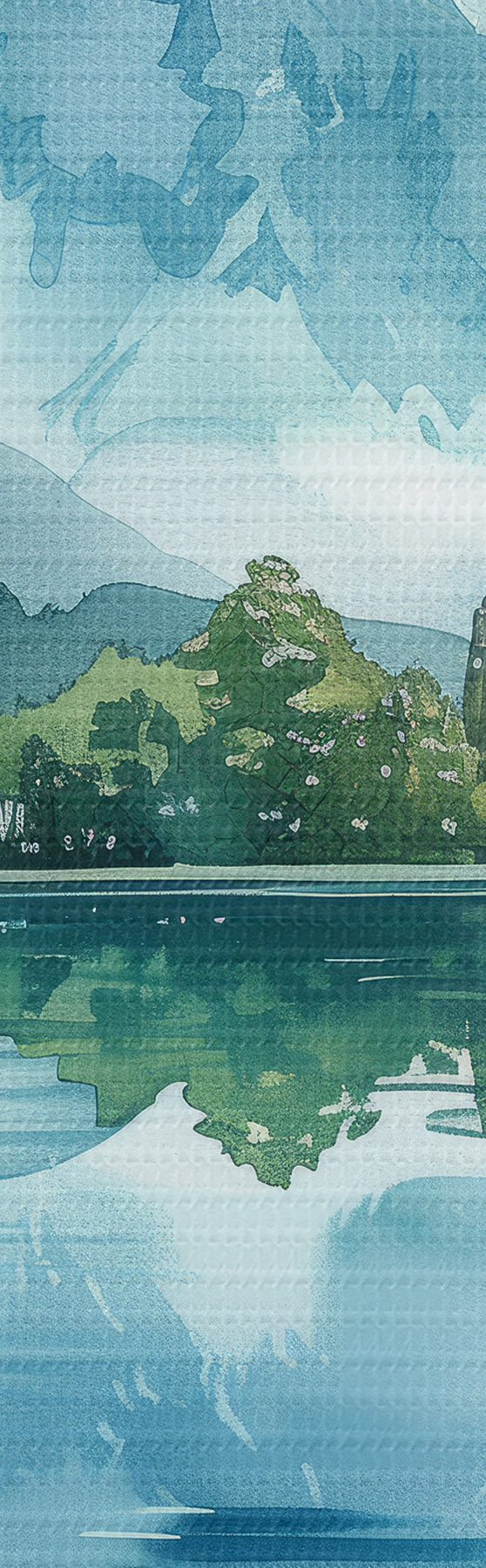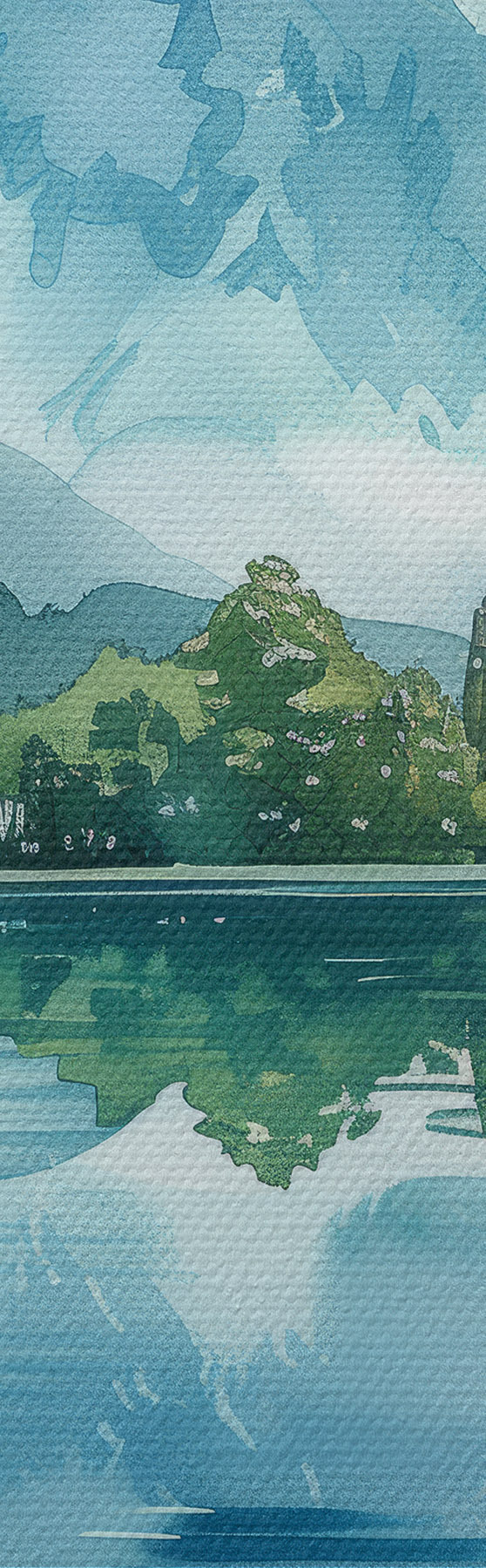 Paveikslas Akvarelė kalnų kraštovaizdis, upė, žalia ir mėlyna spalvos Nr s40310