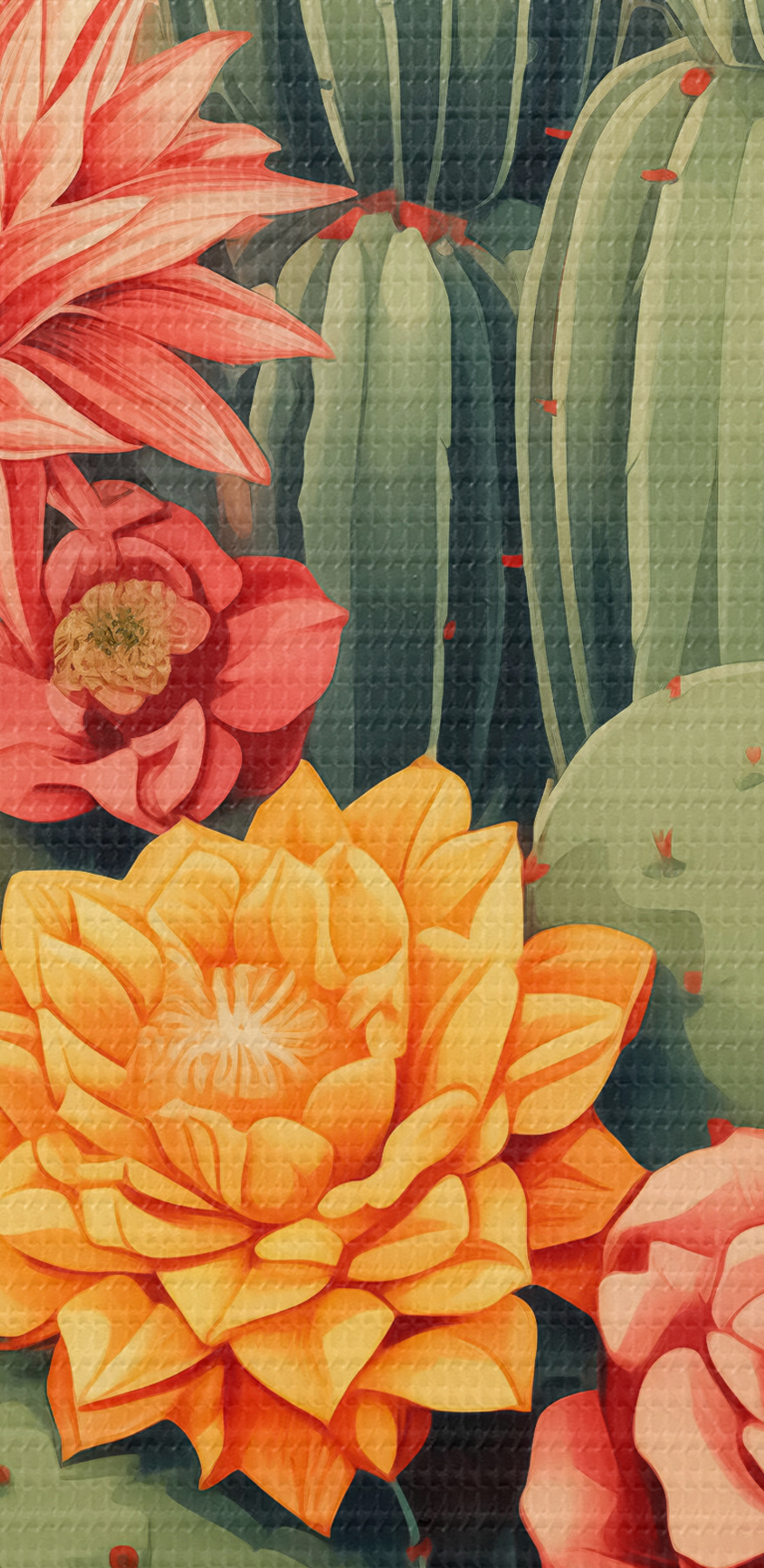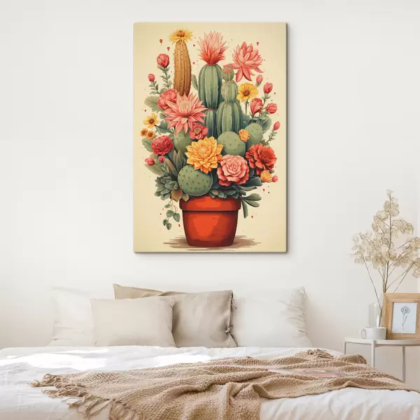 Paveikslas Žydintys kaktusai vazonėlyje, žalios, raudonos, geltonos, oranžinės spalvos Nr s40316