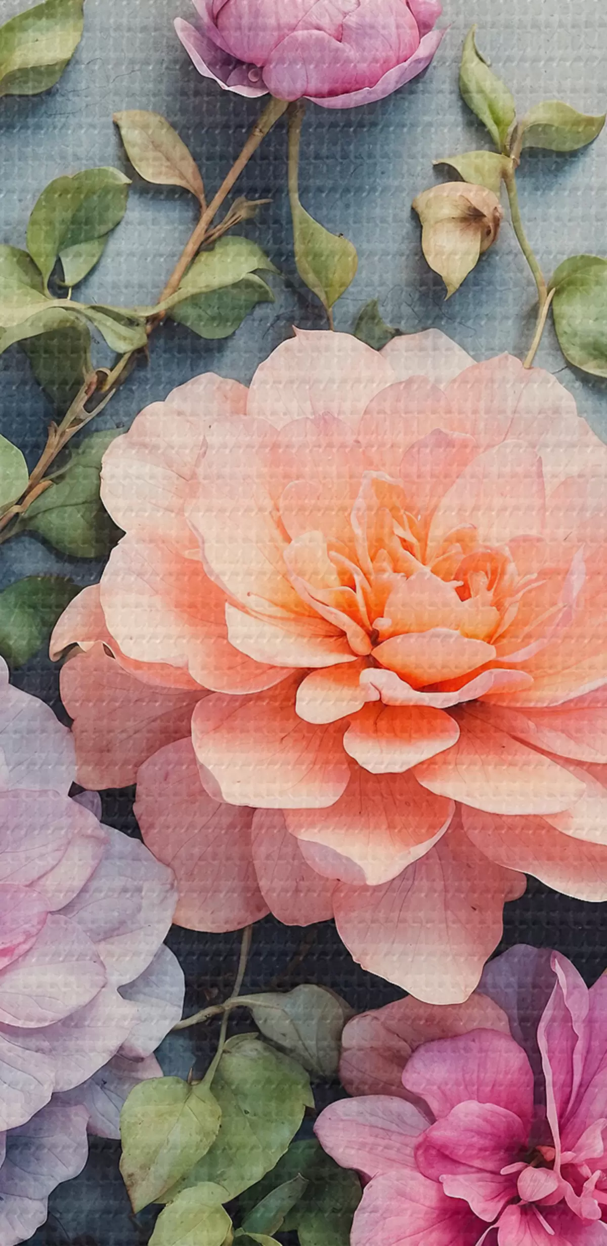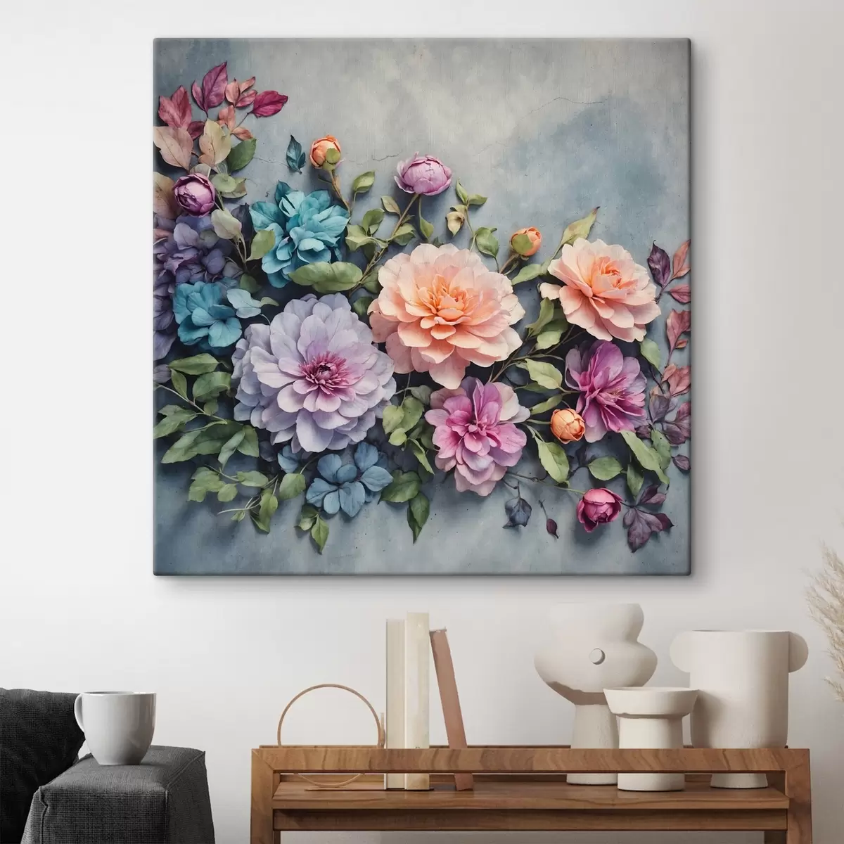 Paveikslas Gėlės ir lapai mėlyname fone Nr s40346