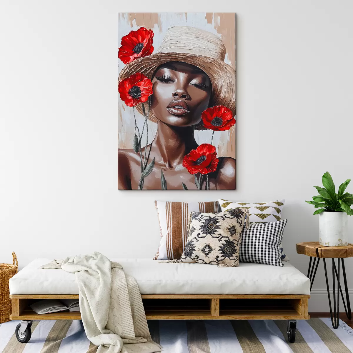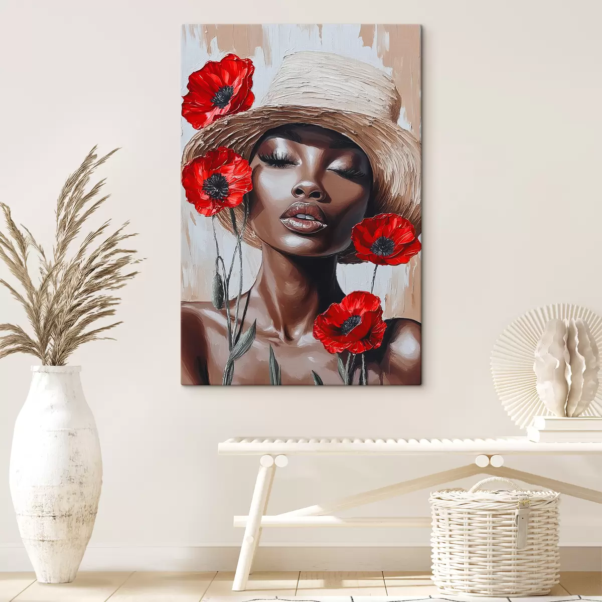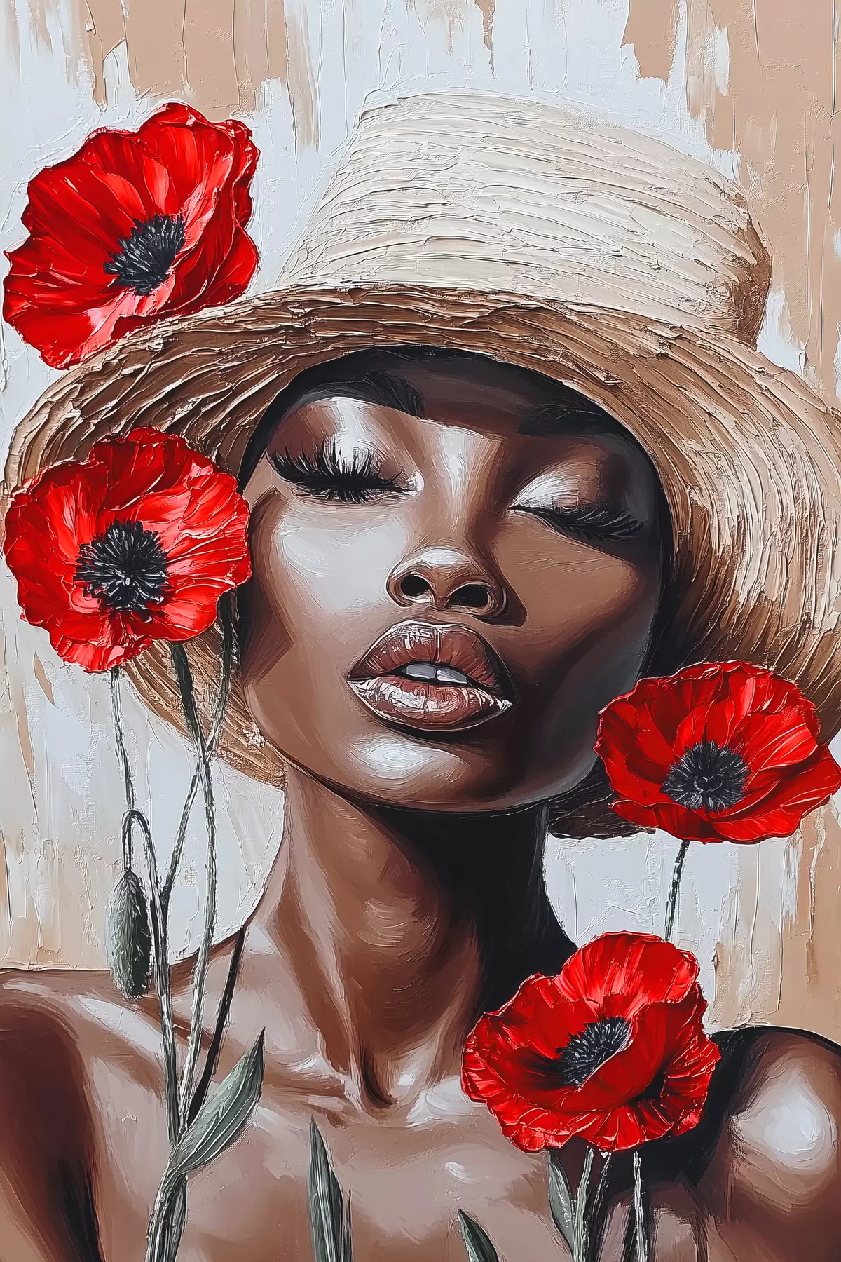Paveikslas Moters skrybėle su raudonomis aguonomis portretas Nr s40350