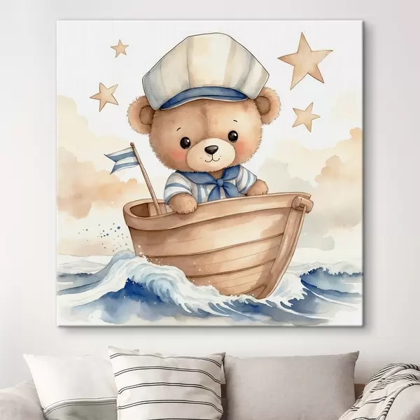 Paveikslas Mielas akvarelinis meškiukas valtyje Nr s40428