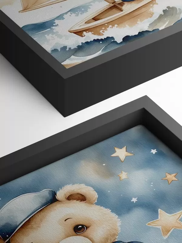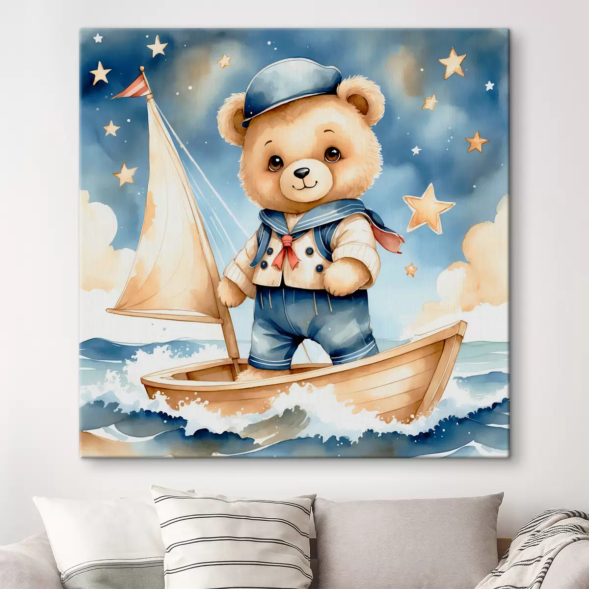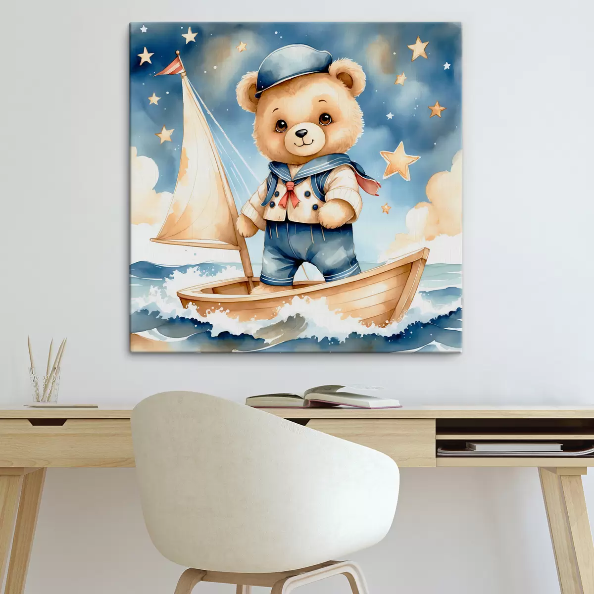 Paveikslas Mielas akvarelinis meškiukas valtyje su žvaigždėmis danguje Nr s40429