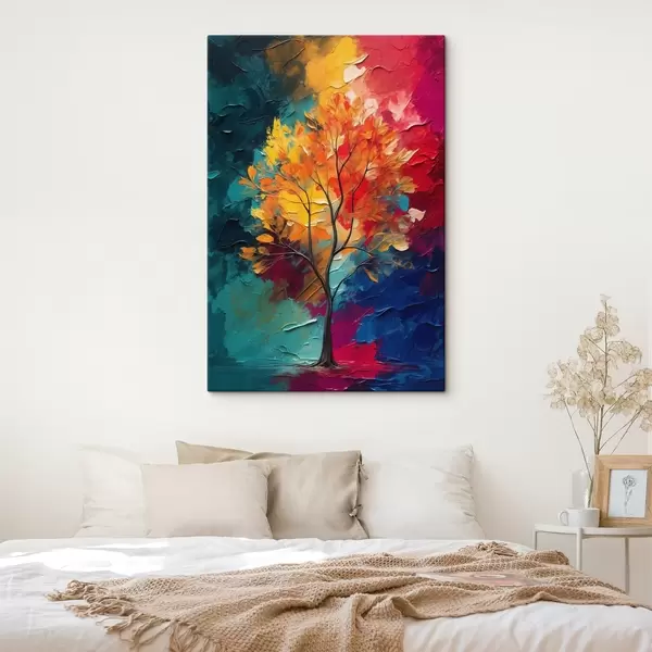 Paveikslas Įvairiaspalvis medis abstrakčiame akrilo fone Nr s40459