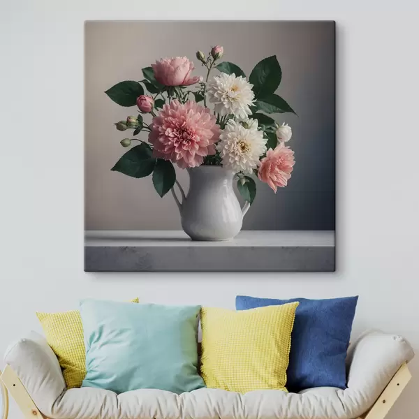 Paveikslas Gėlės baltoje vazoje ant stalo Nr s40472