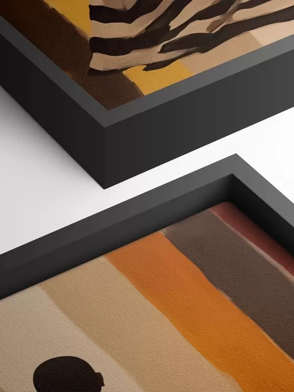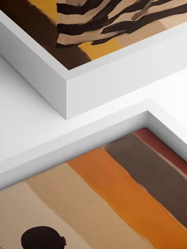 Paveikslas Afroamerikietės siluetas dryžuota pelerina fone su vertikaliomis juostelėmis, juoda, smėlio, geltona, raudona, ruda Nr s40487