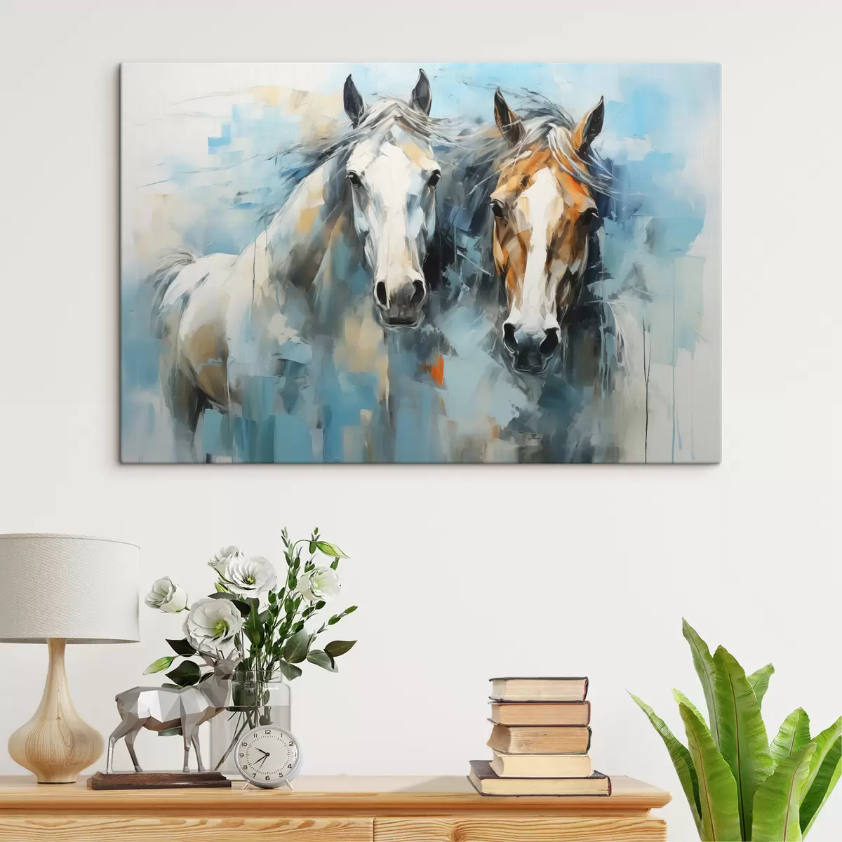 Paveikslas Arkliai abstrakti tapyba, balta, mėlyna, ruda spalva Nr s40493