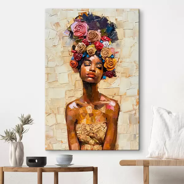 Paveikslas Gražus Afrikos moters modelis su gėlėmis Nr s40508