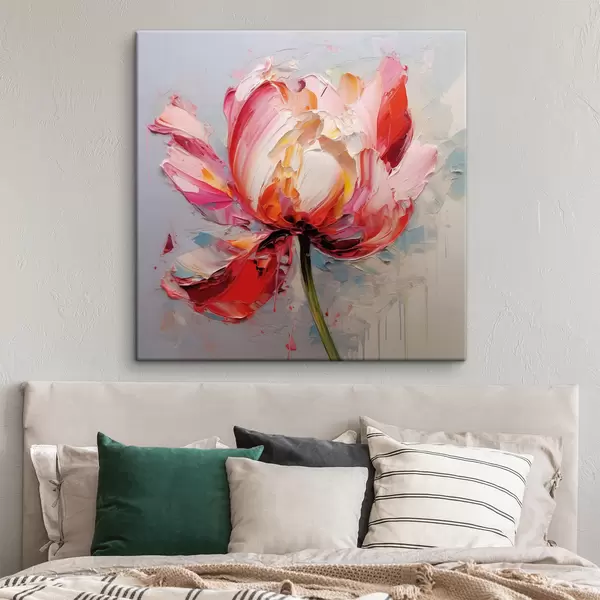 Paveikslas Žydi tulpė, raudona, rožinė, pilka spalva Nr s40519