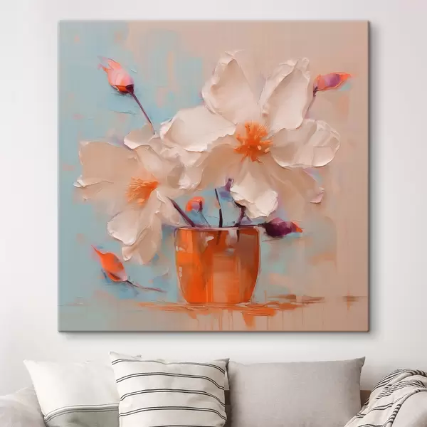 Paveikslas Narcizai vazoje, balti, oranžiniai, smėlio spalvos, mėlyni Nr s40520