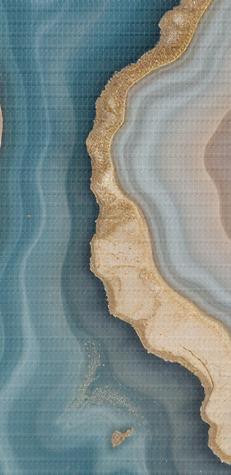 Paveikslas Spalvingas abstraktus agato akmuo su besisukančiomis raštais ir turkio, smėlio, rožinės ir geltonos spalvos sluoksniais Nr s40540