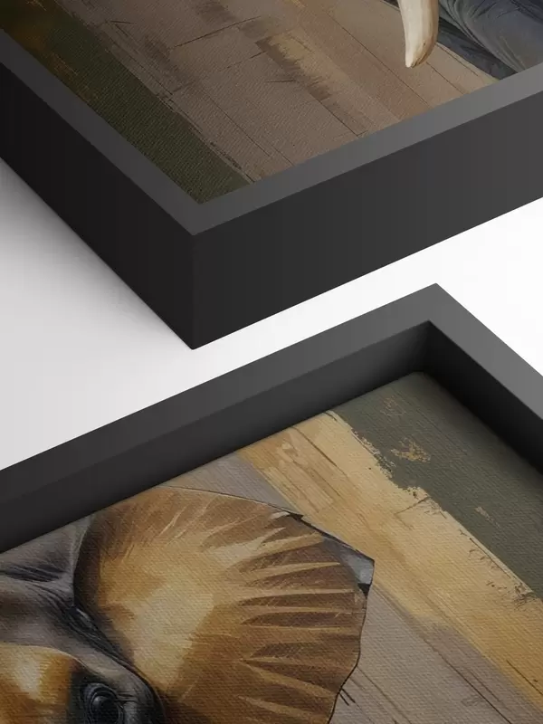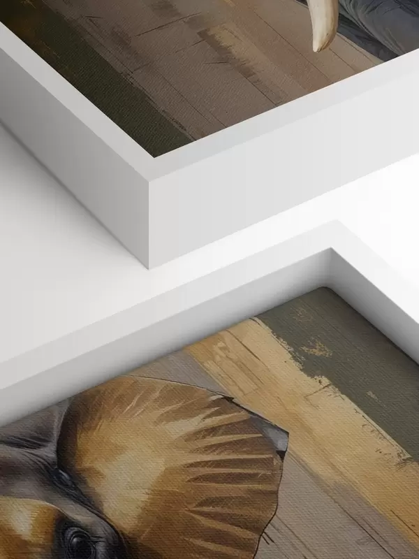 Paveikslas Didelis faktūrinis Afrikos dramblio paveikslas su dramblio kaulo iltimis ir išsipūtusiomis ausimis mediniame fone Nr s40544