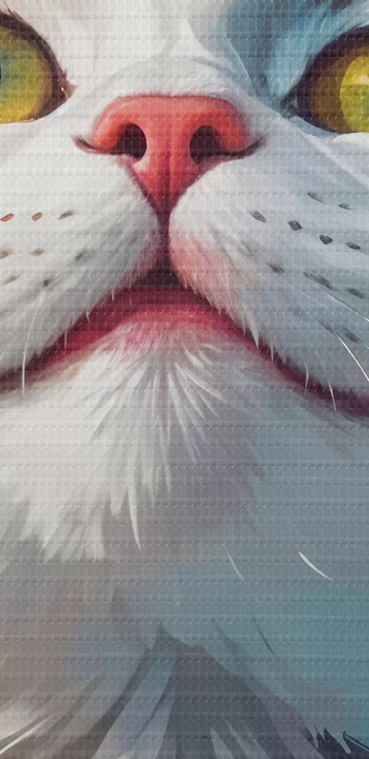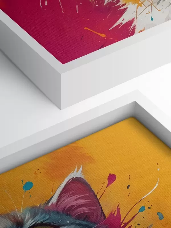 Paveikslas Baltos ir oranžinės spalvos katės portretas iš arti su ryškiais, spalvingais dažų purslais Nr s40547
