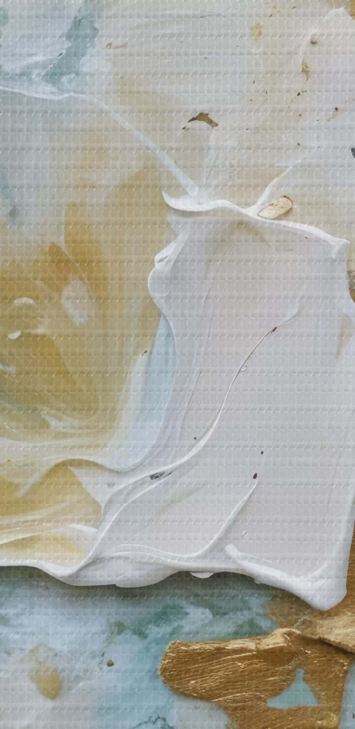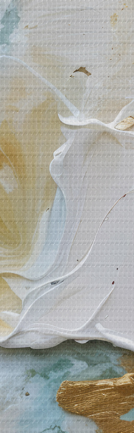 Paveikslas Nulupami dažai su baltos, mėlynos ir geltonos spalvos sluoksniais, sukuriantys abstraktų, tekstūruotą spaudinį Nr s40577