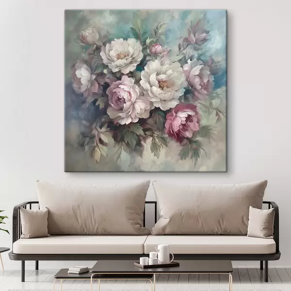 Paveikslas Rožinių ir baltų bijūnų puokštė aliejiniais dažais Nr s40582
