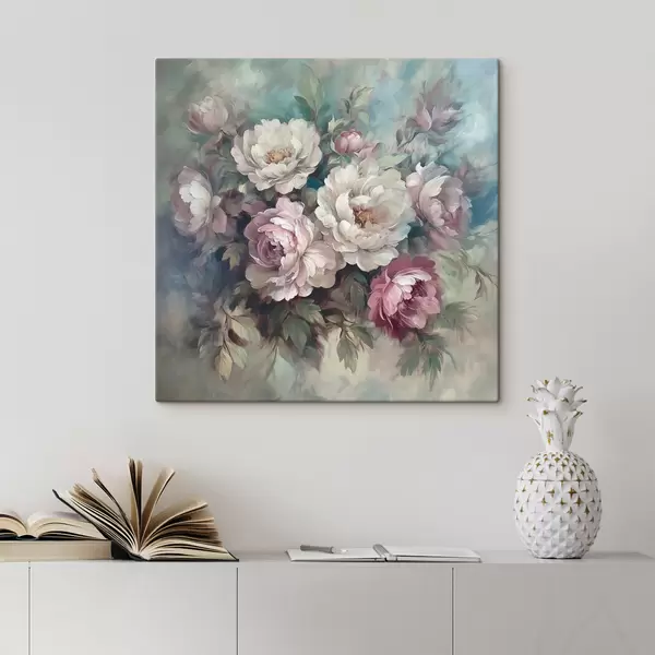 Paveikslas Rožinių ir baltų bijūnų puokštė aliejiniais dažais Nr s40582