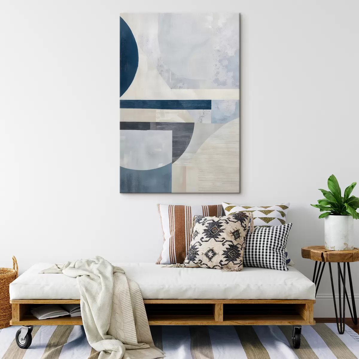 Paveikslas Minimalistinė abstrakcija su geometrinėmis formomis ir tekstūromis mėlynos, pilkos ir baltos spalvos atspalviais Nr s40596