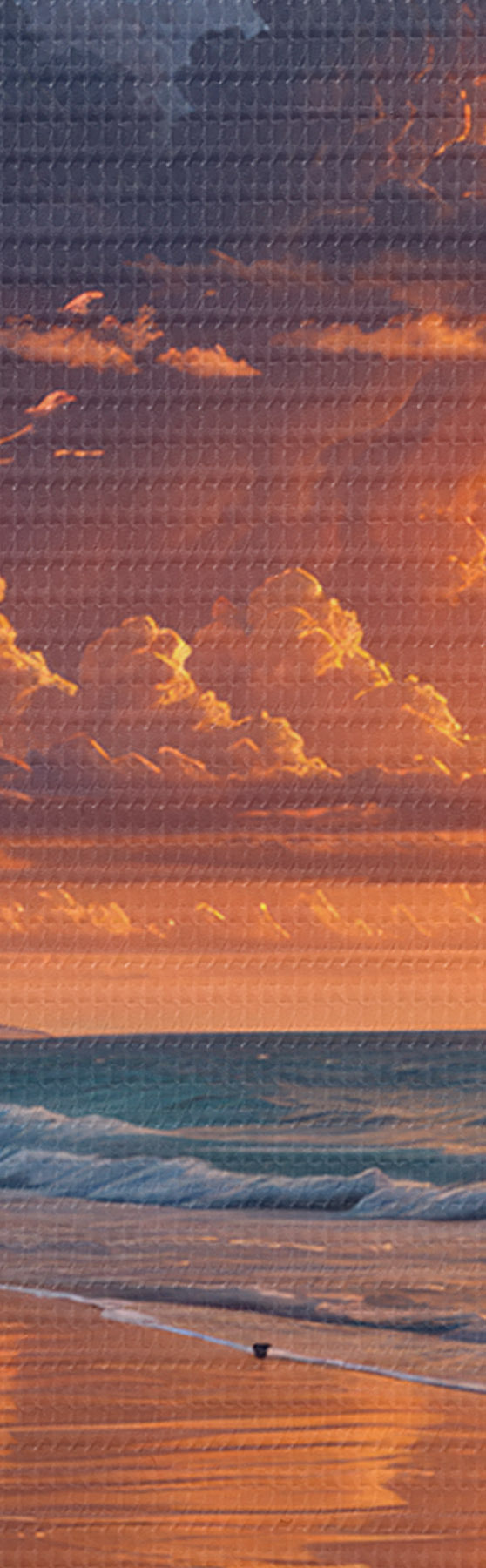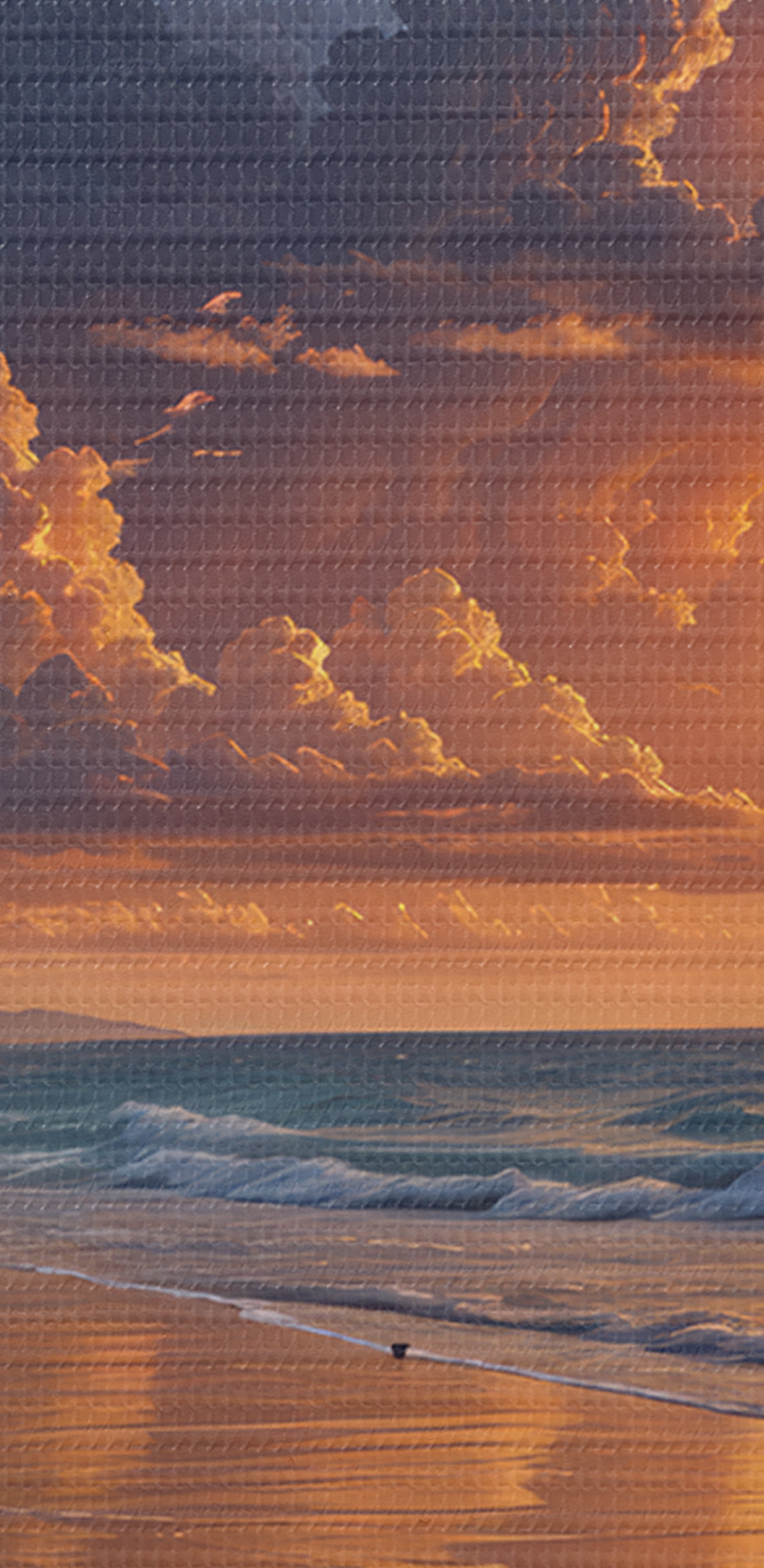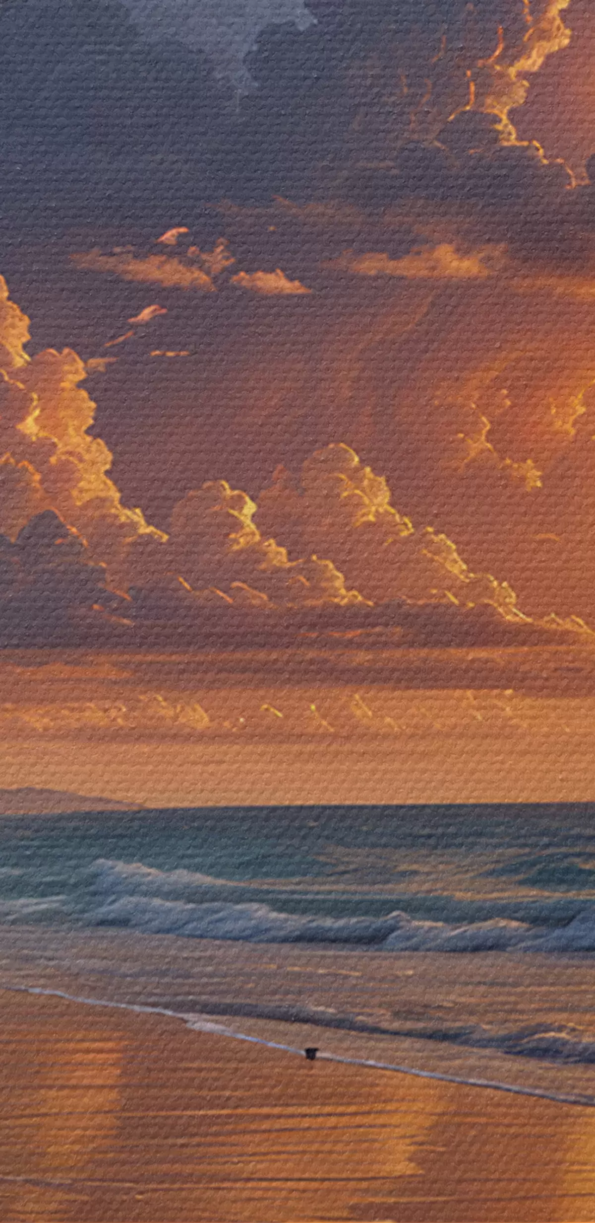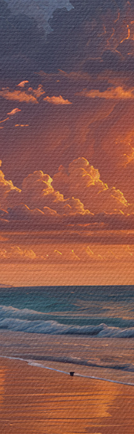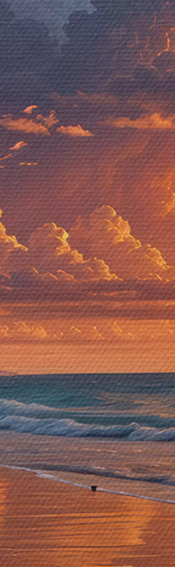 Paveikslas Dramatiškas saulėlydis virš atogrąžų paplūdimio su ryškiais oranžiniais ir rausvais debesimis, atsispindinčiais ramiame vandenyje Nr s40599