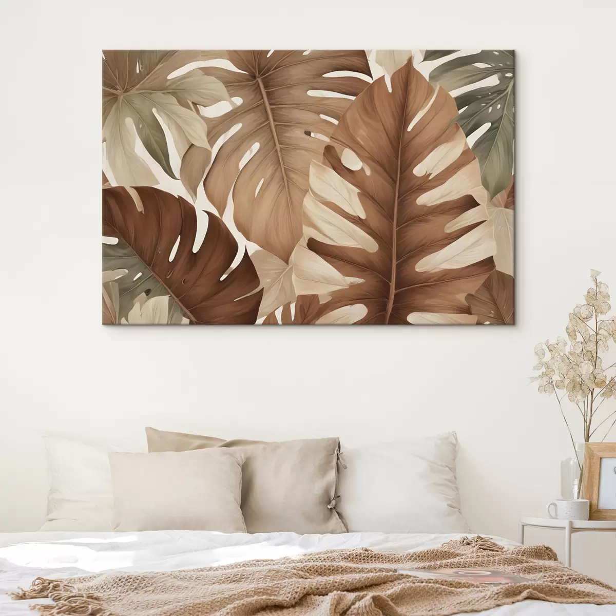 Paveikslas Atogrąžų natūralių, organinės tekstūros rudų ir smėlio atspalvių lapų spauda Nr s40613