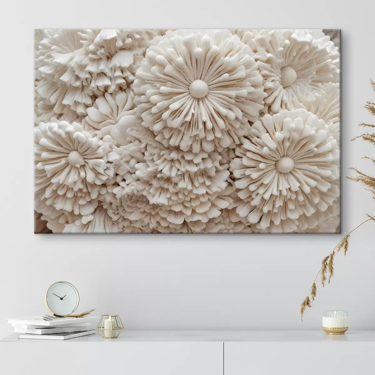 Paveikslas Švelnių, kreminės spalvos koralų struktūrų, sukuriančių minkštą tekstūrinį raštą, sankaupa iš arti Nr s40614