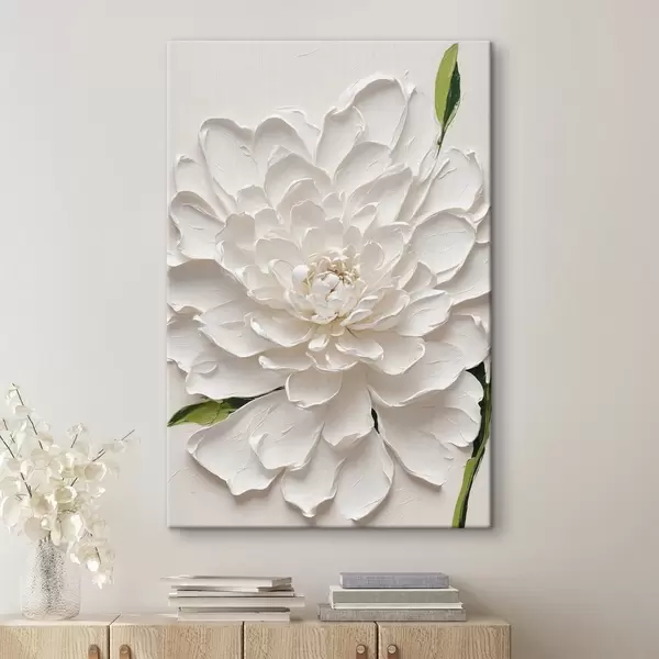 Paveikslas Balta gėlė aliejuje su žaliu stiebu Nr s40620