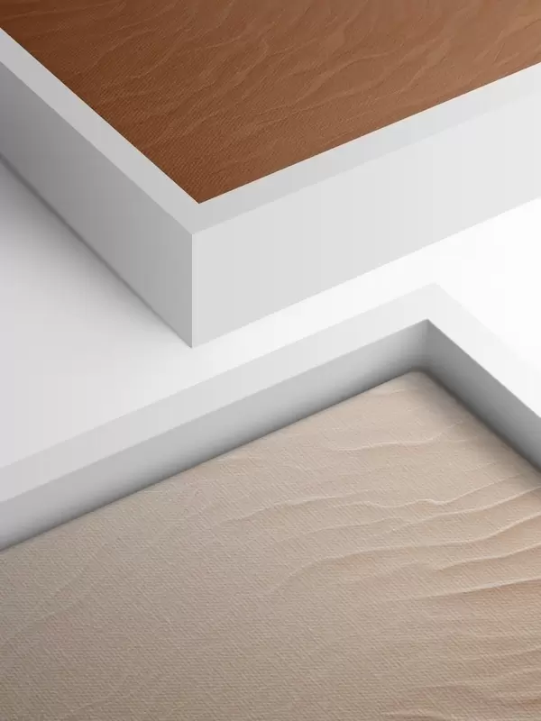 Standartas - lygi, grūdėta sintetinė medžiaga su blizgiu paviršiumi.