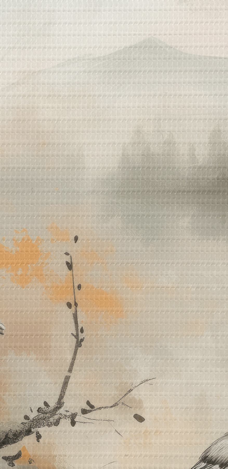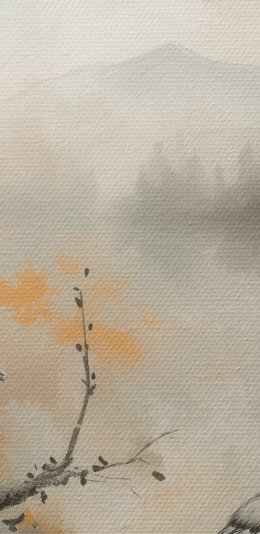 Paveikslas Akvarelinis peizažas su paukščiais, sėdinčiais ant šakos, pastelinėmis spalvomis Nr s40655