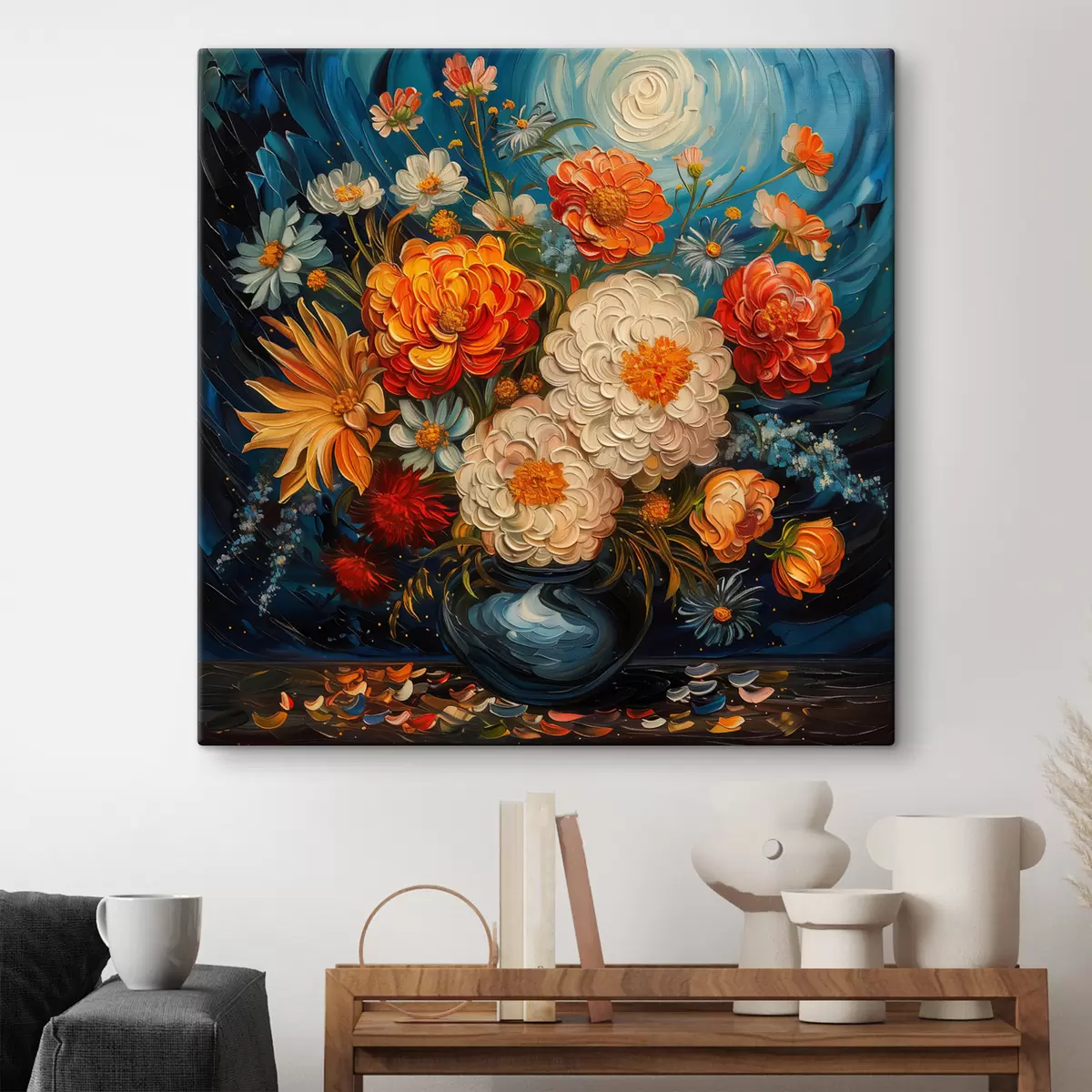 Paveikslas Van Gogo stiliaus gėlių kompozicija vazoje Nr s40671