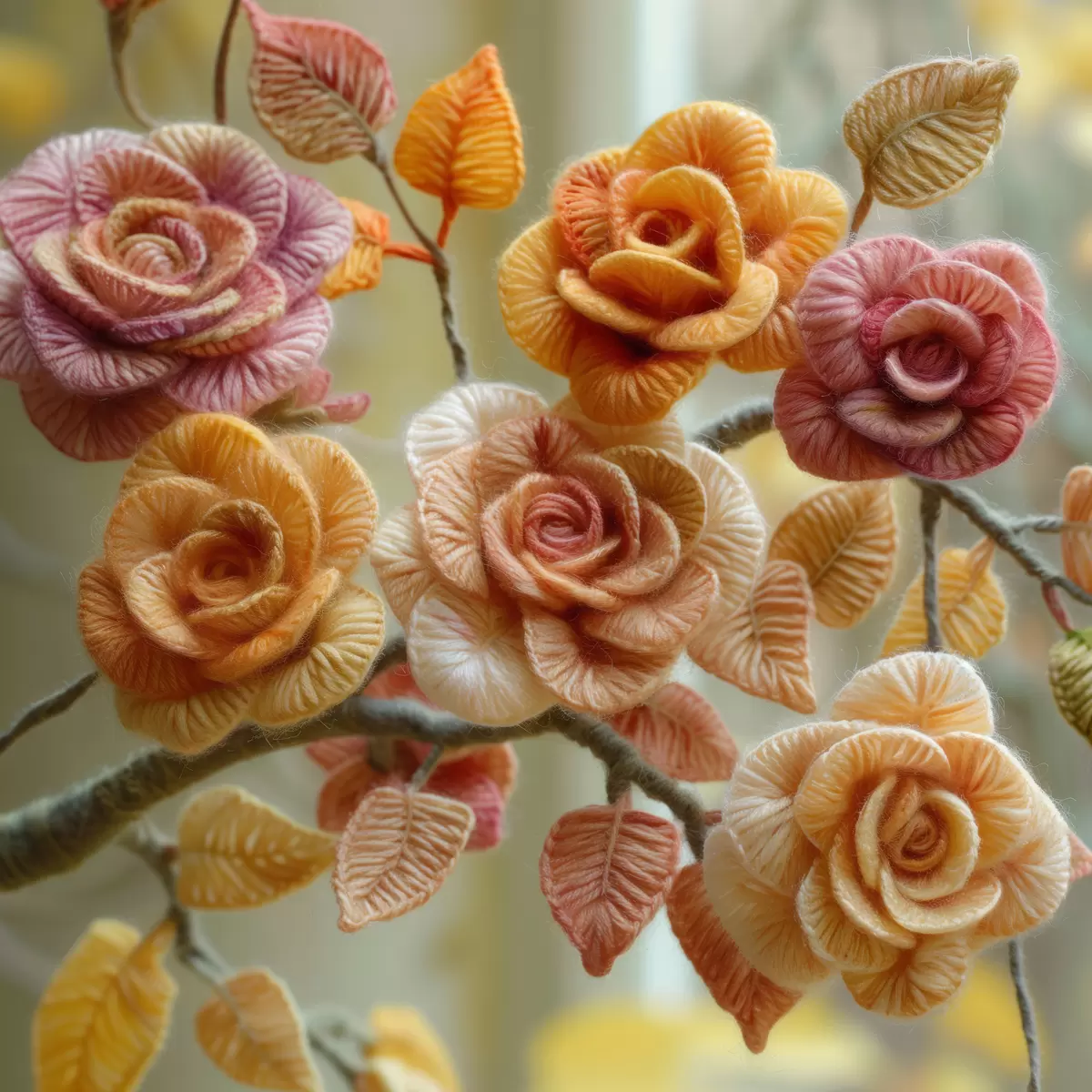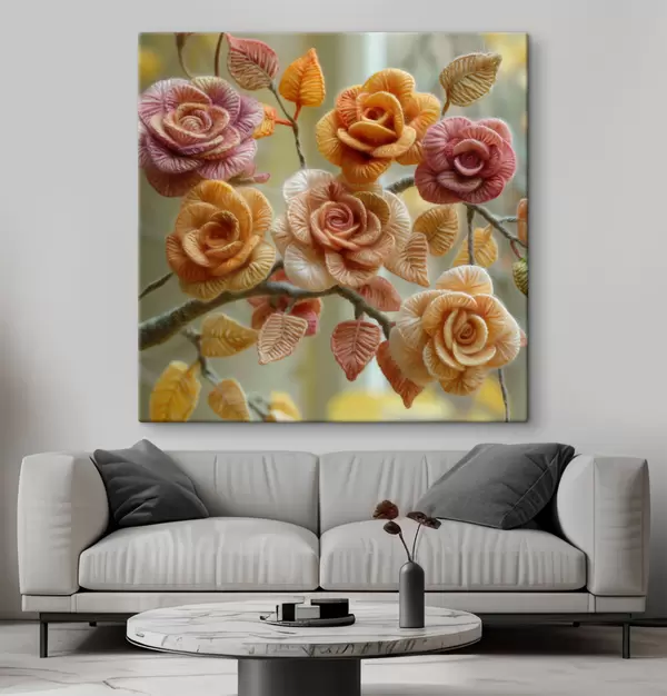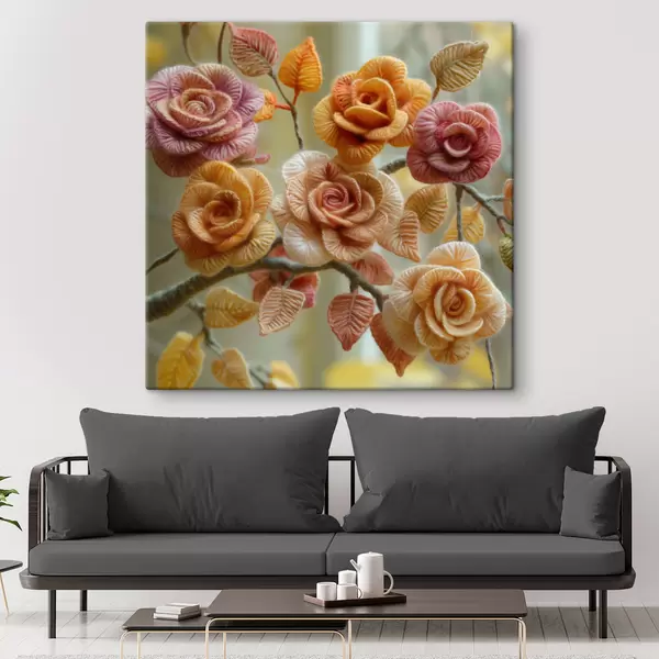 Paveikslas Rožės, išaustos iš minkštos purios vilnos ant medžio Nr s40674