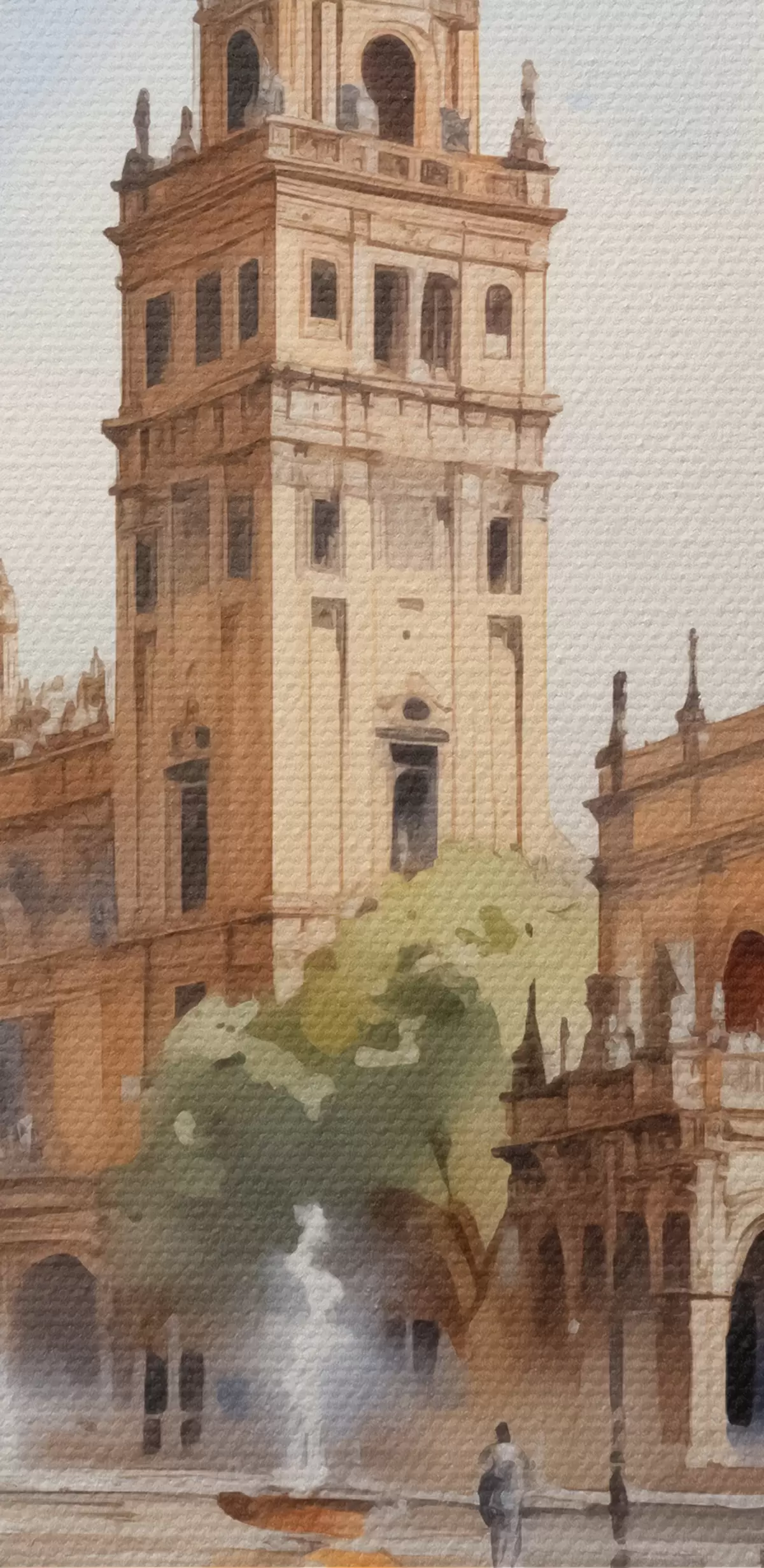 Paveikslas Pilies aikštė mieste akvarelė Nr s40681