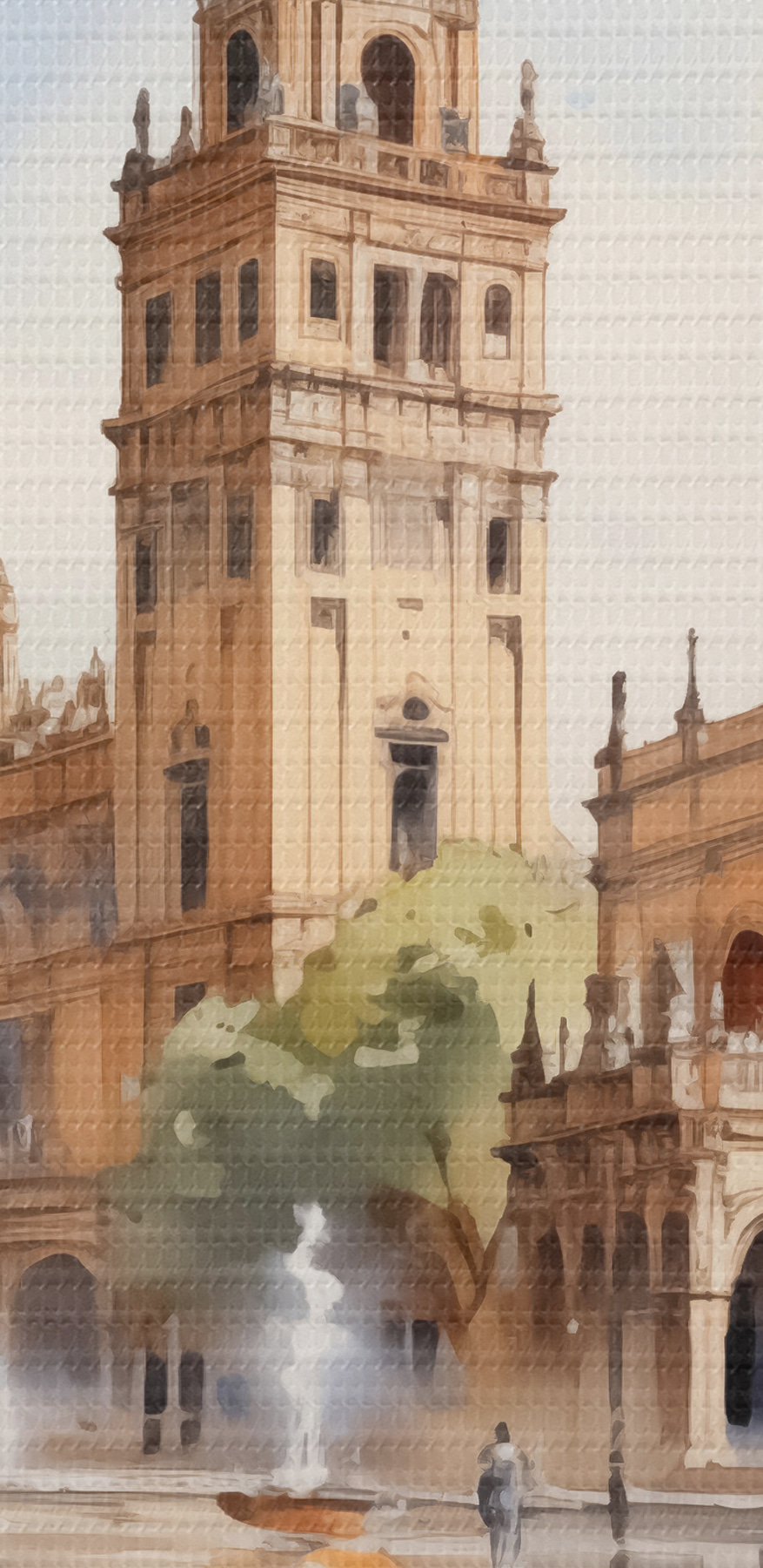 Paveikslas Pilies aikštė mieste akvarelė Nr s40681