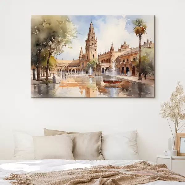 Paveikslas Pilies aikštė mieste akvarelė Nr s40681