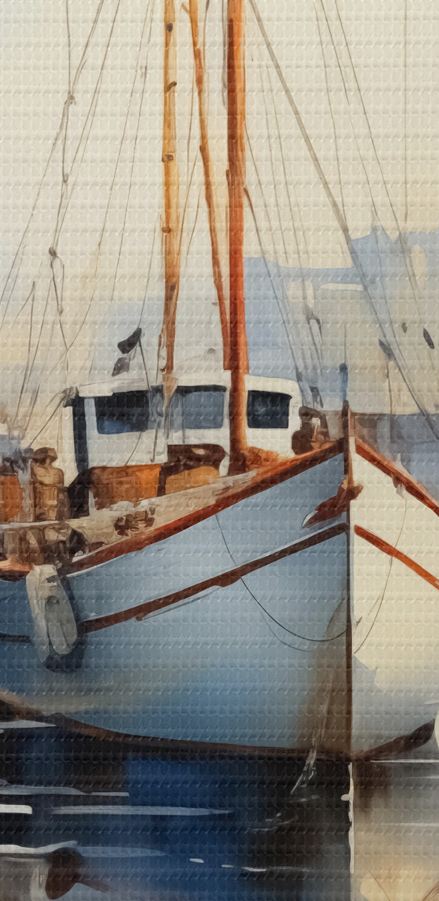 Paveikslas Žvejybos laivas prieplaukoje prie jūros šlapia akvarelė Nr s40688