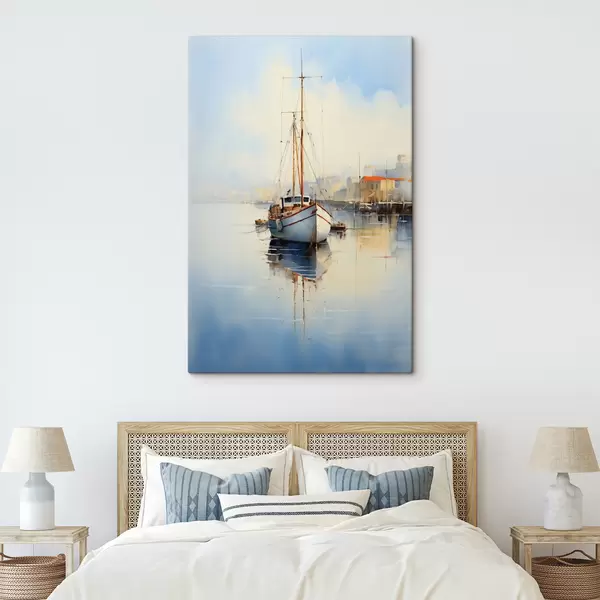 Paveikslas Žvejybos laivas prieplaukoje prie jūros šlapia akvarelė Nr s40688