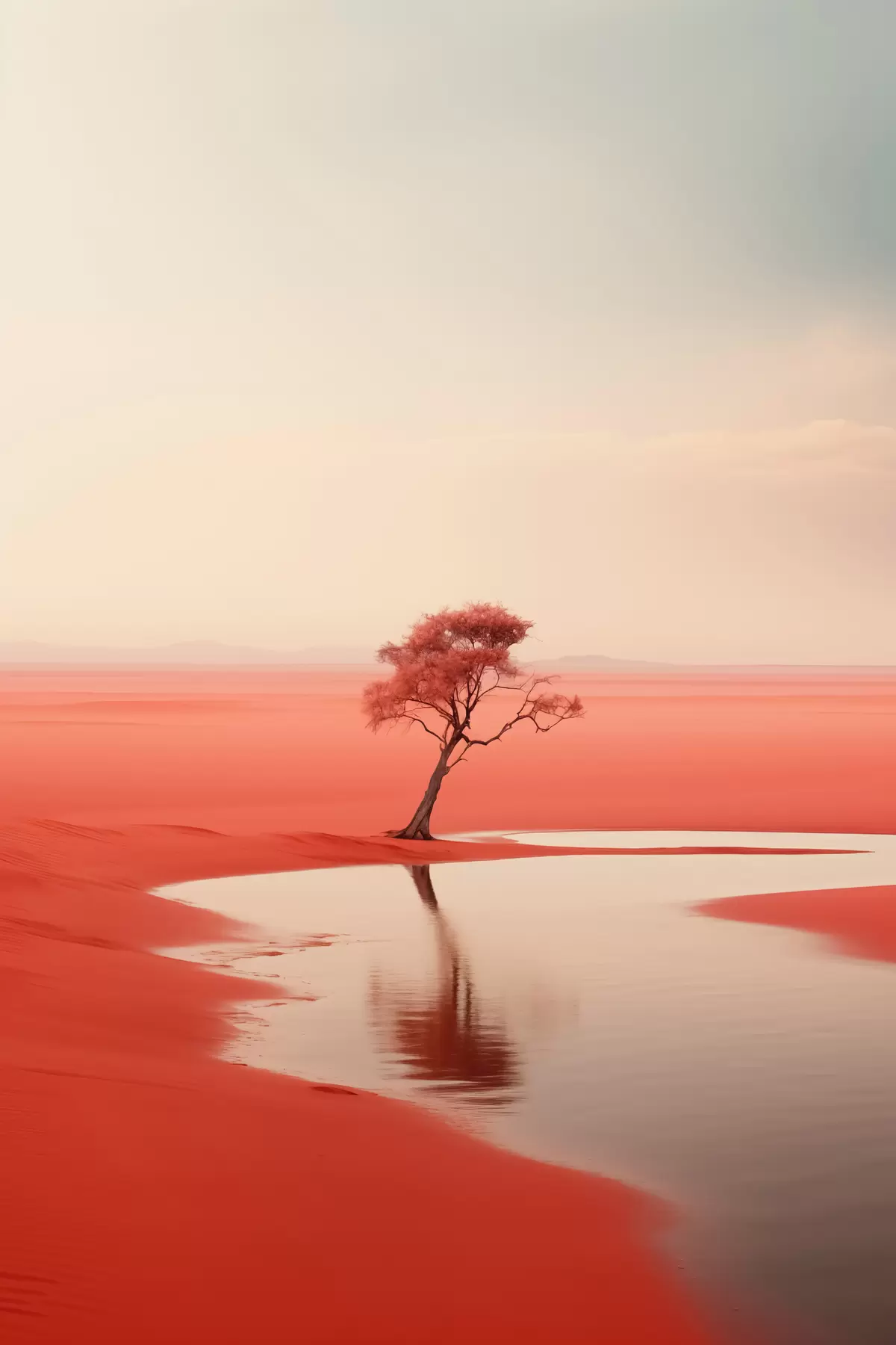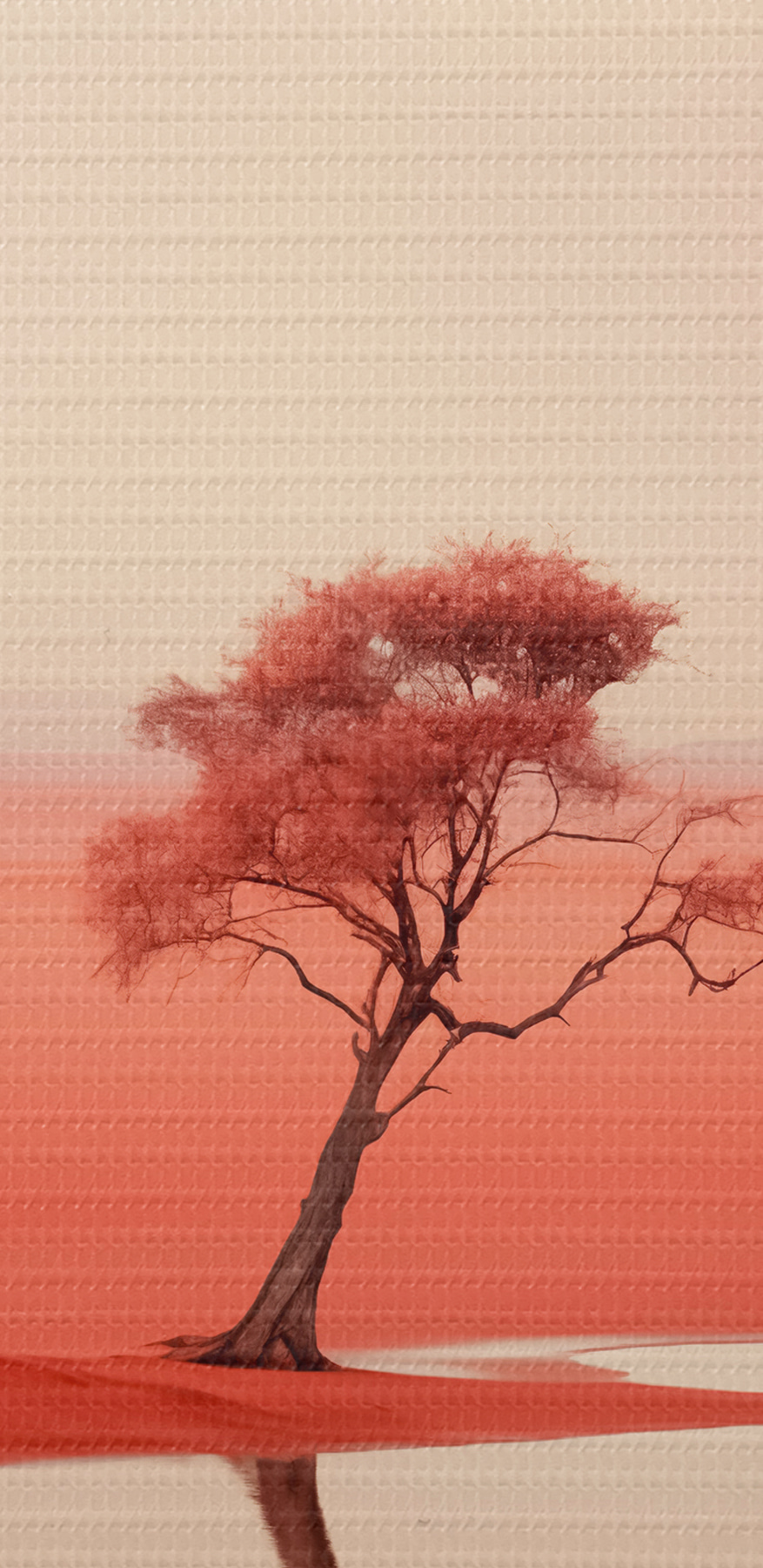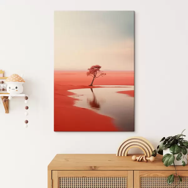 Paveikslas Minimalistinis kraštovaizdžio medis prie upės, raudona, pilka spalva Nr s40722