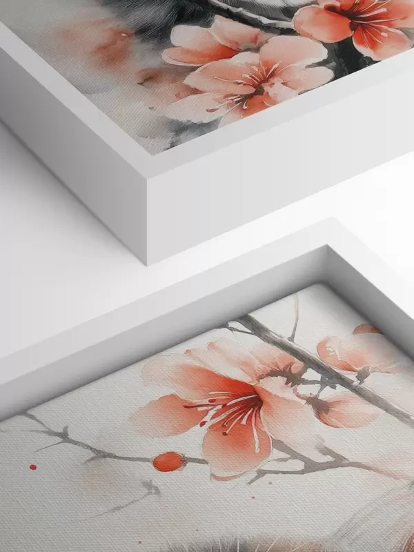 Paveikslas Mielas kačiukas ant šakos su gėlėmis Nr s40734