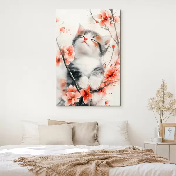 Paveikslas Mielas kačiukas ant šakos su gėlėmis Nr s40734