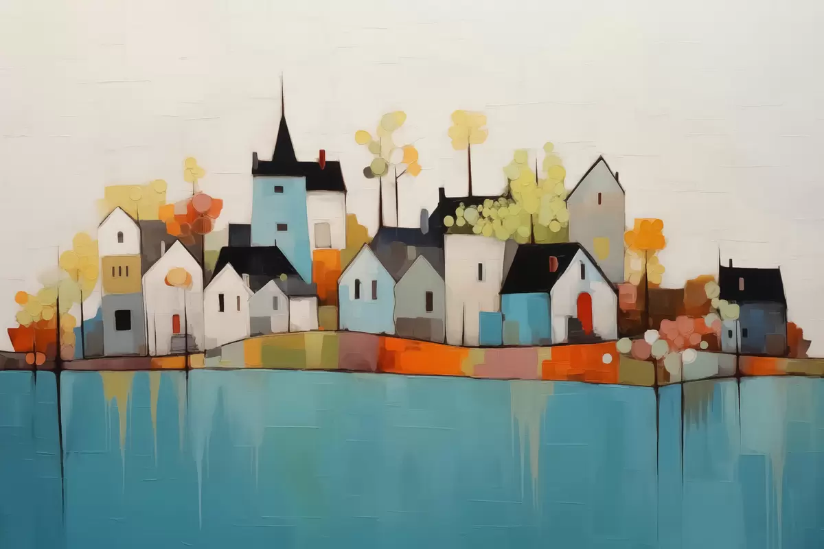 Paveikslas Abstraktus miestas ir namai, mėlyna, geltona, raudona spalva Nr s40751