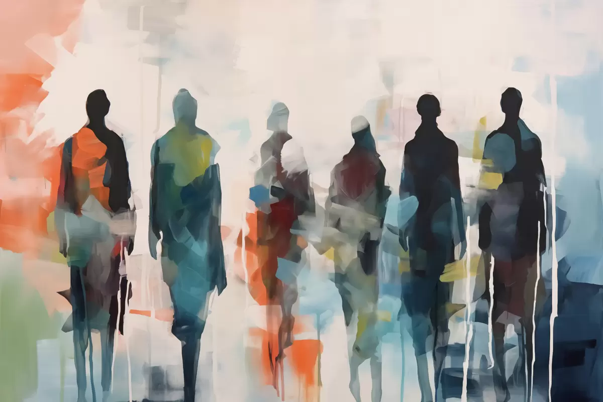 Paveikslas Abstrakčių žmonių grupės siluetai, teptuko potėpių imitacija Nr s40752