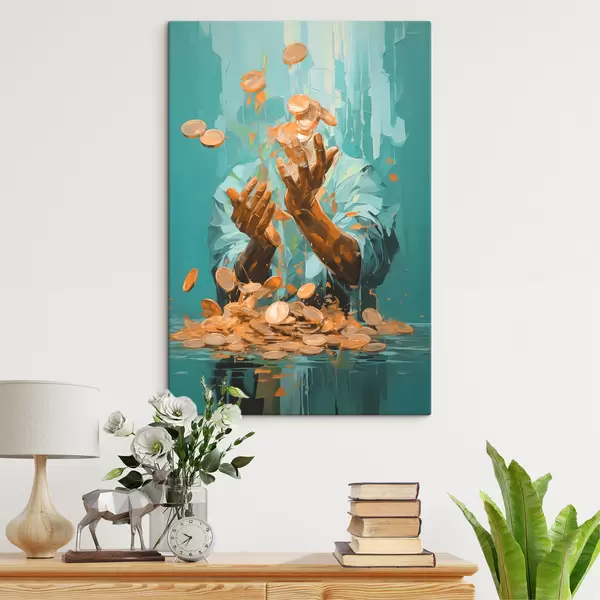 Paveikslas Abstraktus paveikslas, vaizduojantis vyrą, apsuptą monetų Nr s40755