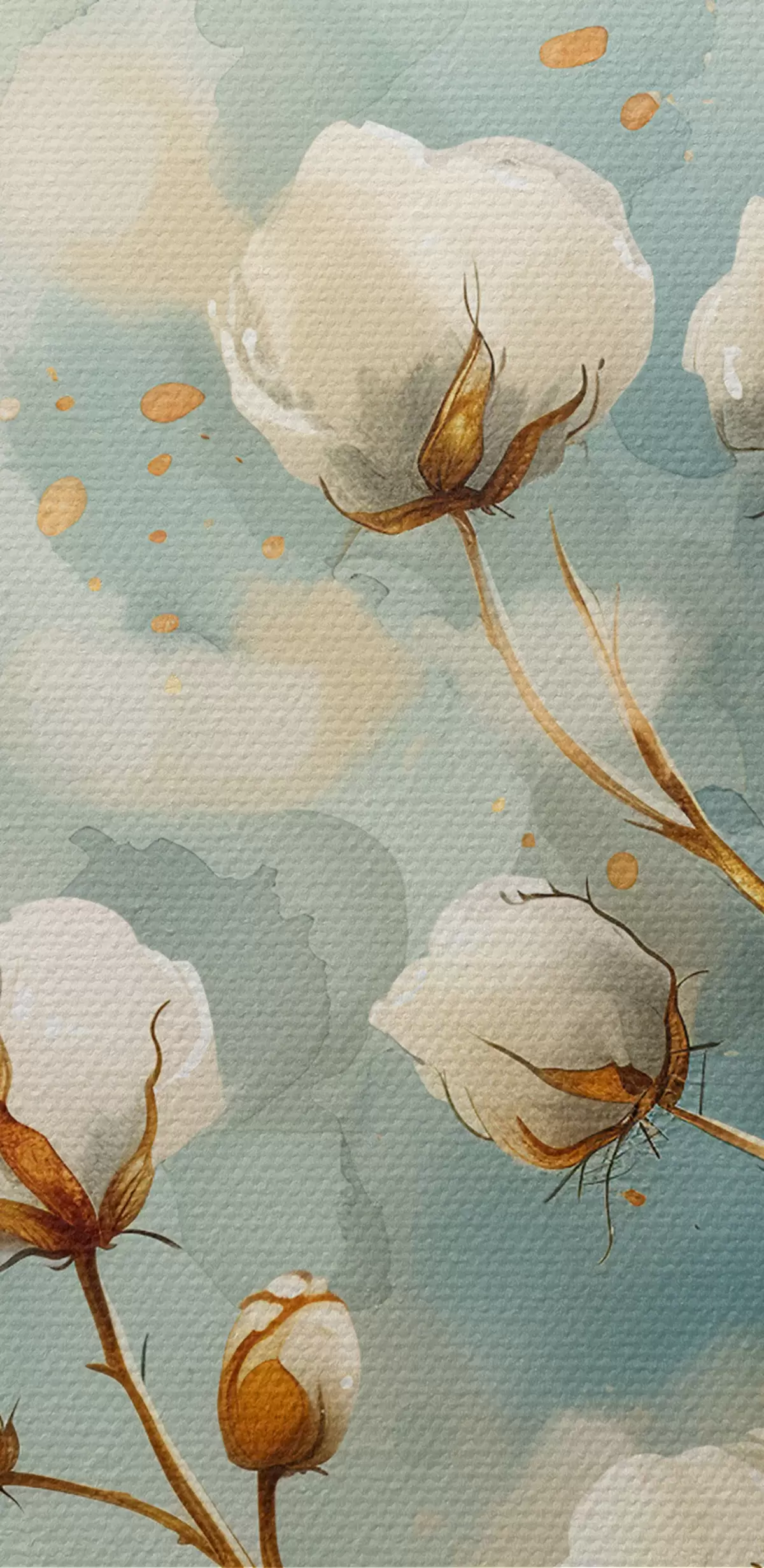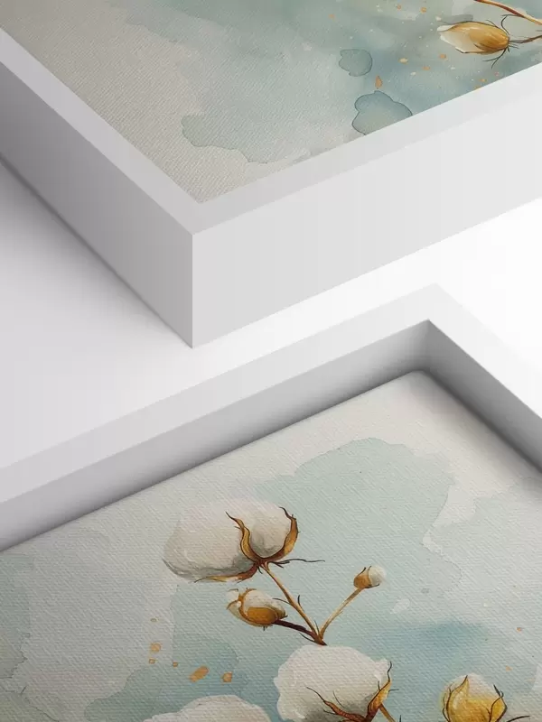 Paveikslas Medvilnės šaka akvareliniame fone Nr s40780