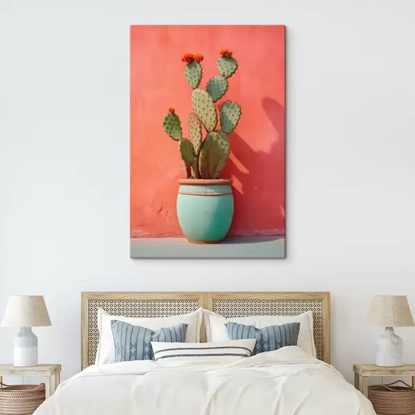 Paveikslas Kaktusas šviesiame vazone prie rausvai raudonos sienos Nr s40800
