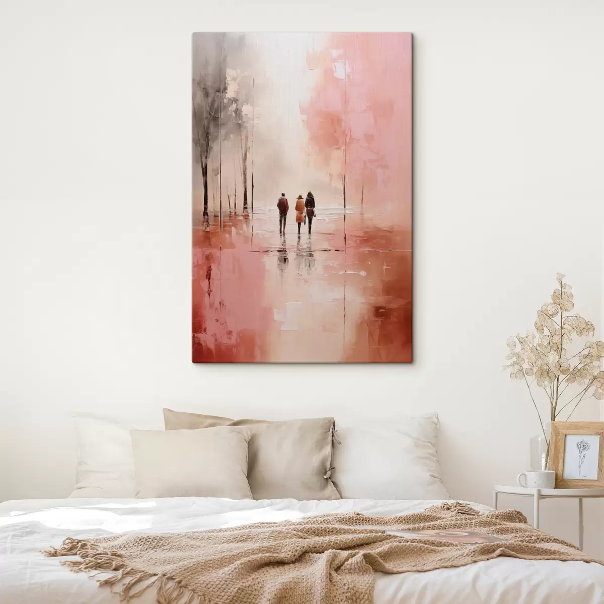 Paveikslas Žmonės, vaikščiojantys parke abstraktus, rožinė raudona spalva Nr s40802