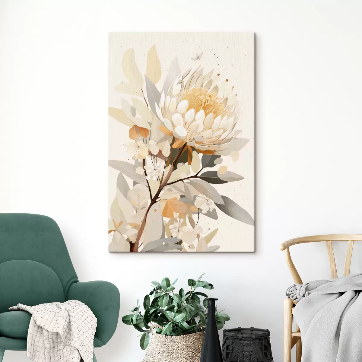 Paveikslas Protea gėlė švelniai smėlio spalvos paletėje, gėlių abstrakcija Nr s40819