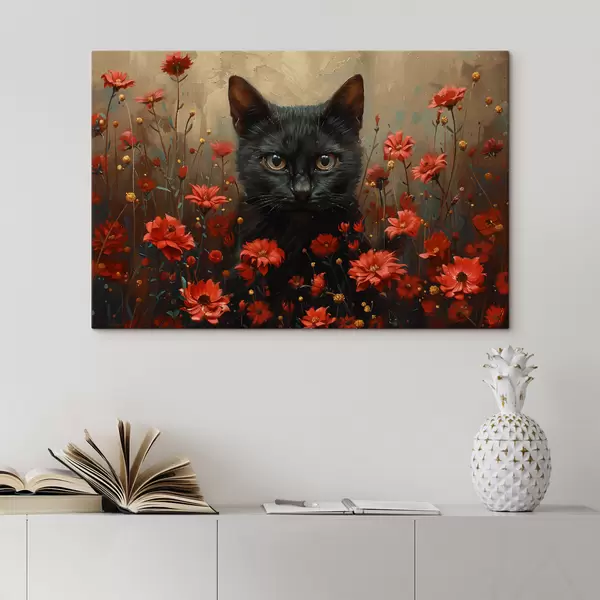 Paveikslas Katė, gėlės, juoda katė Nr s40839