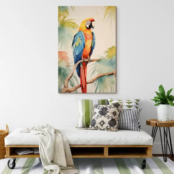 Paveikslas Ant šakos sėdi spalvinga papūga makaka Nr s40879