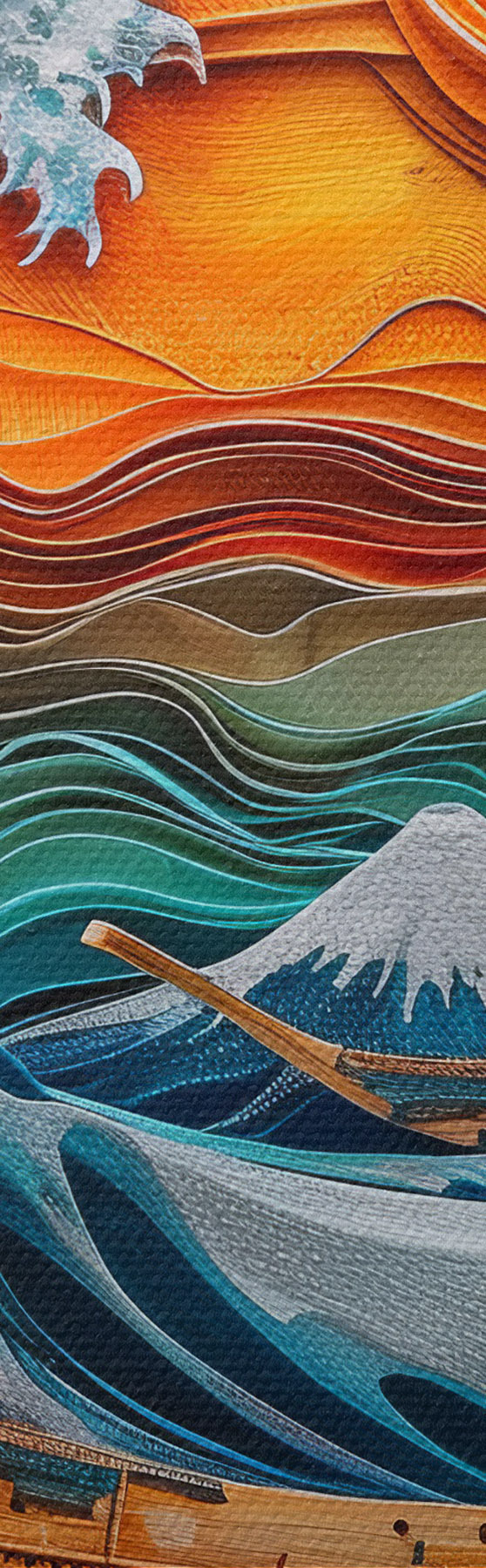 Paveikslas Bareljefo imitacija: šėlstantis vandenynas su valtimis ir saule Nr s40976