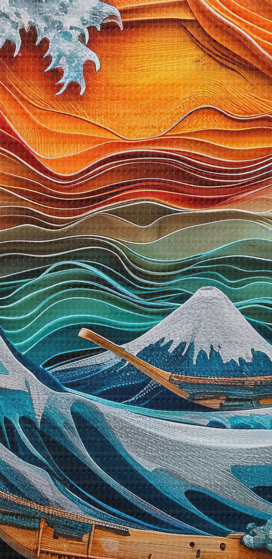 Paveikslas Bareljefo imitacija: šėlstantis vandenynas su valtimis ir saule Nr s40976