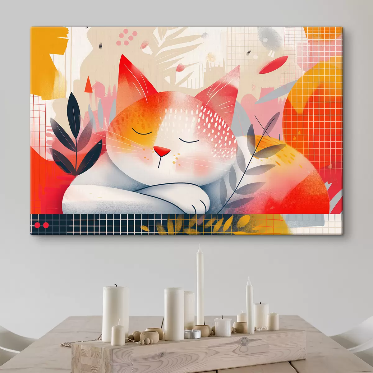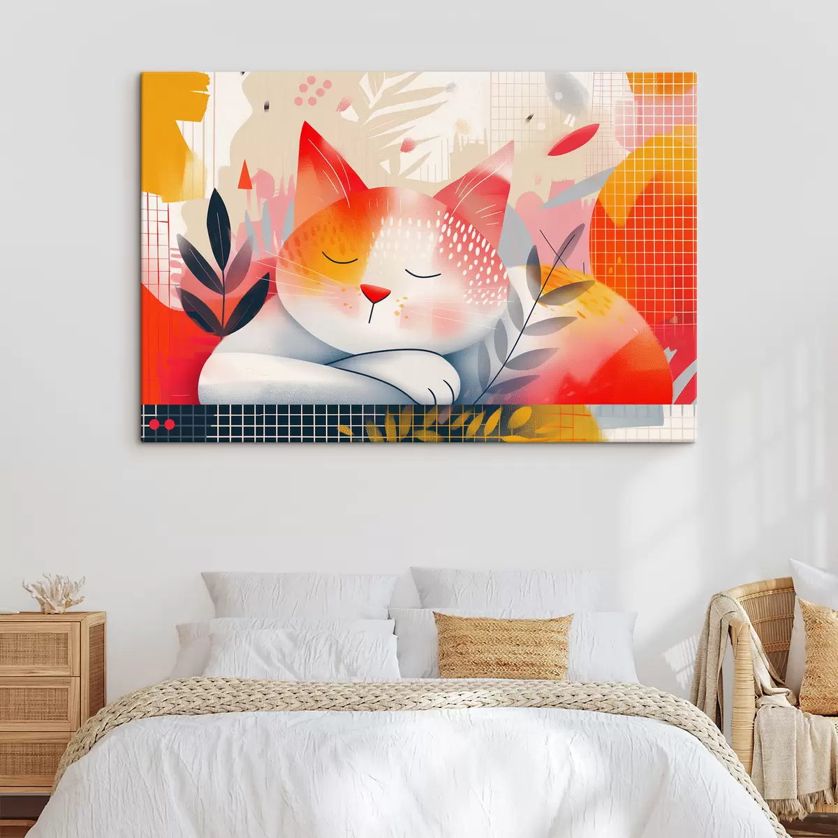 Paveikslas Mielas katinas miega ant grindų tarp spalvingų gėlių Nr s40981